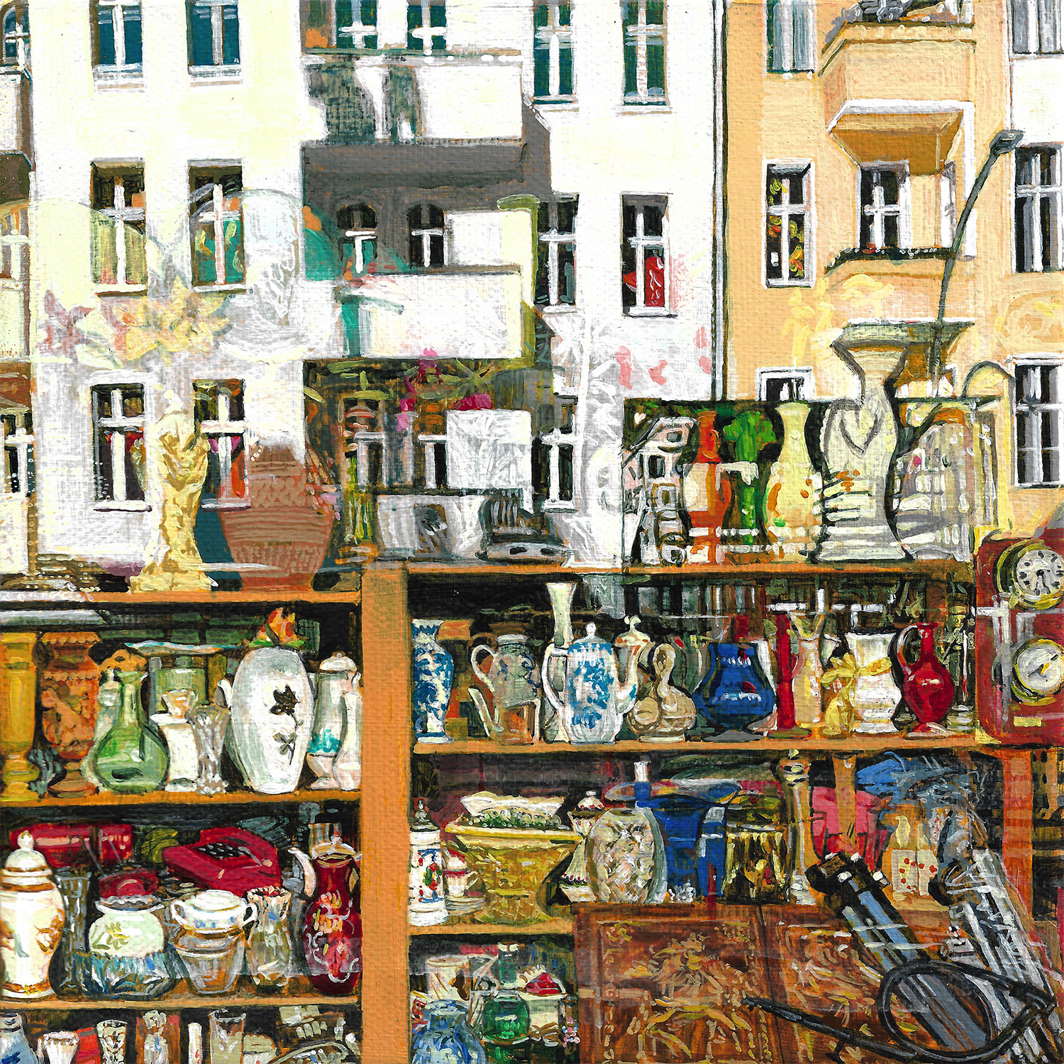 Through painting and drawing I want to question what reality is, what are we looking at? Where does one reality start and another begin in an image. With shifting layers, I place the viewer in between moments. In space or time. Colour creates remembered new realities. Memory is individual and collective. How I remember an event or era is different to how someone else will remember it.